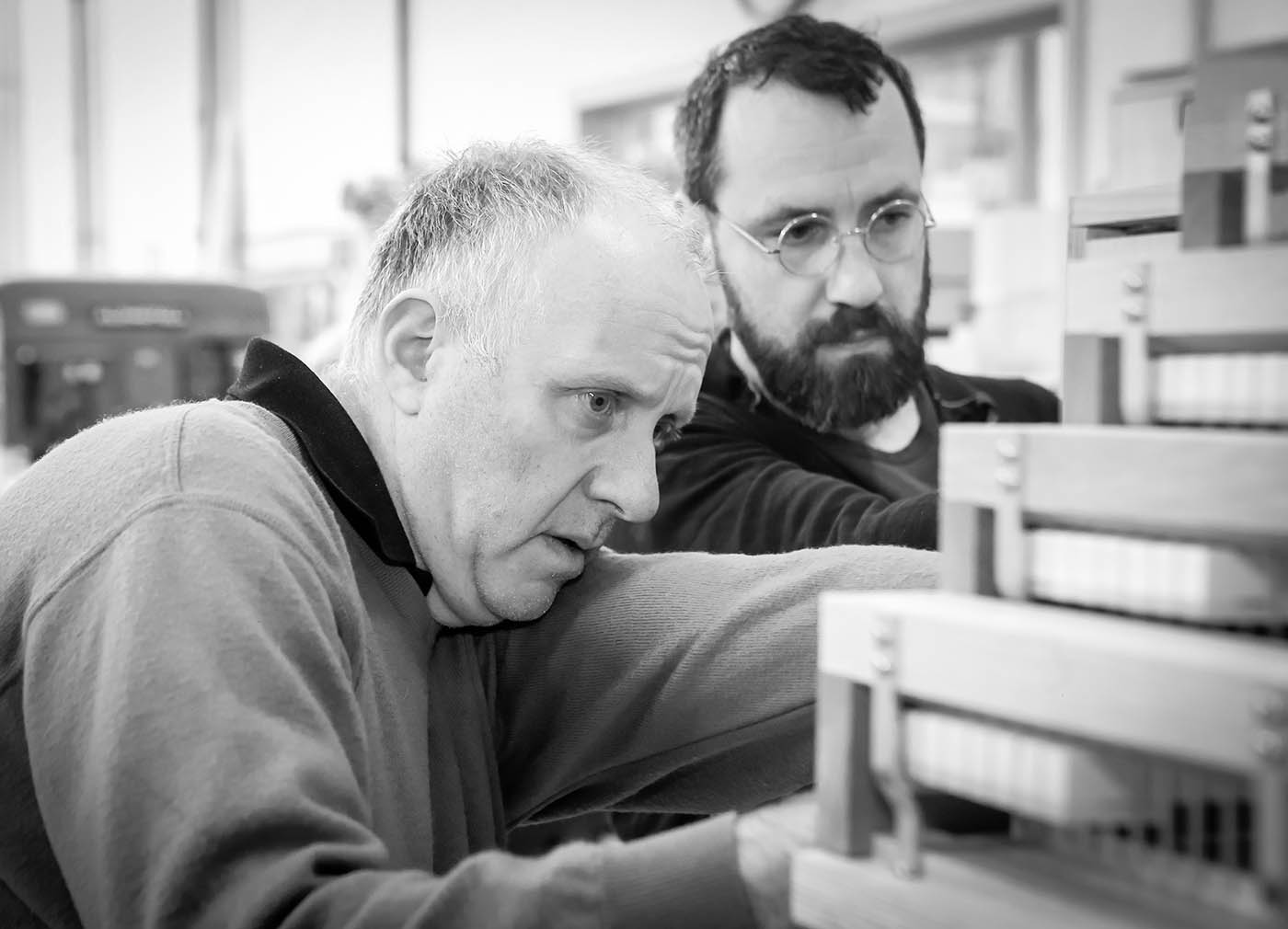 Ohne eine systematische Modernisierung behalten wir die historischen Produktionsmittel, die sich bewährt haben, und investieren regelmäßig in neue Werkzeuge, die eine qualitativ hochwertige Arbeit unter guten Bedingungen ermöglichen. Auch die kontinuierliche Schulung im Bereich der Arbeitssicherheit ist ein wichtiger Schwerpunkt.